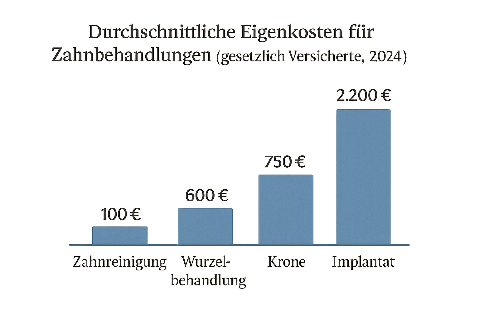 Viele wissen es nicht: Gesetzlich Versicherte zahlen laut aktuellen Daten zwischen 100 € (Zahnreinigung) und 2.200 € (Implantat) aus eigener Tasche. Mit einer Zusatzversicherung können Sie diese Kosten komplett vermeiden.